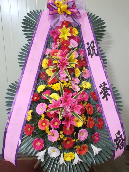탁구회원분의 결혼을 축하하기 위한 3단화환
